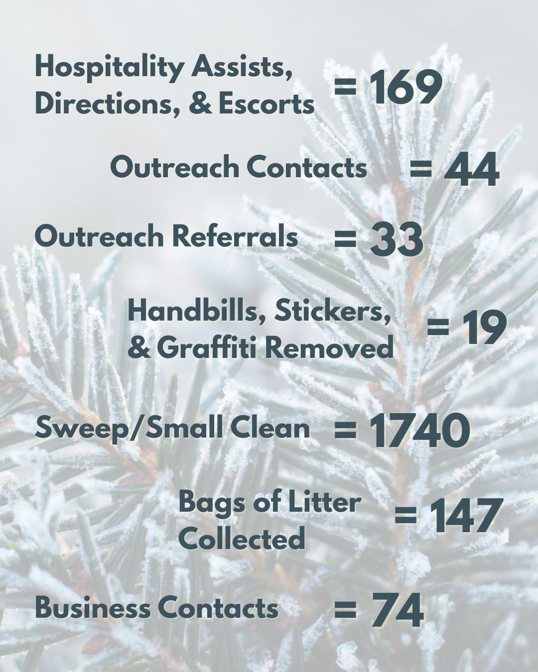 December was a budy moth for everyone, including our Downtown Ambassadors. Check out their monthly statistics below!