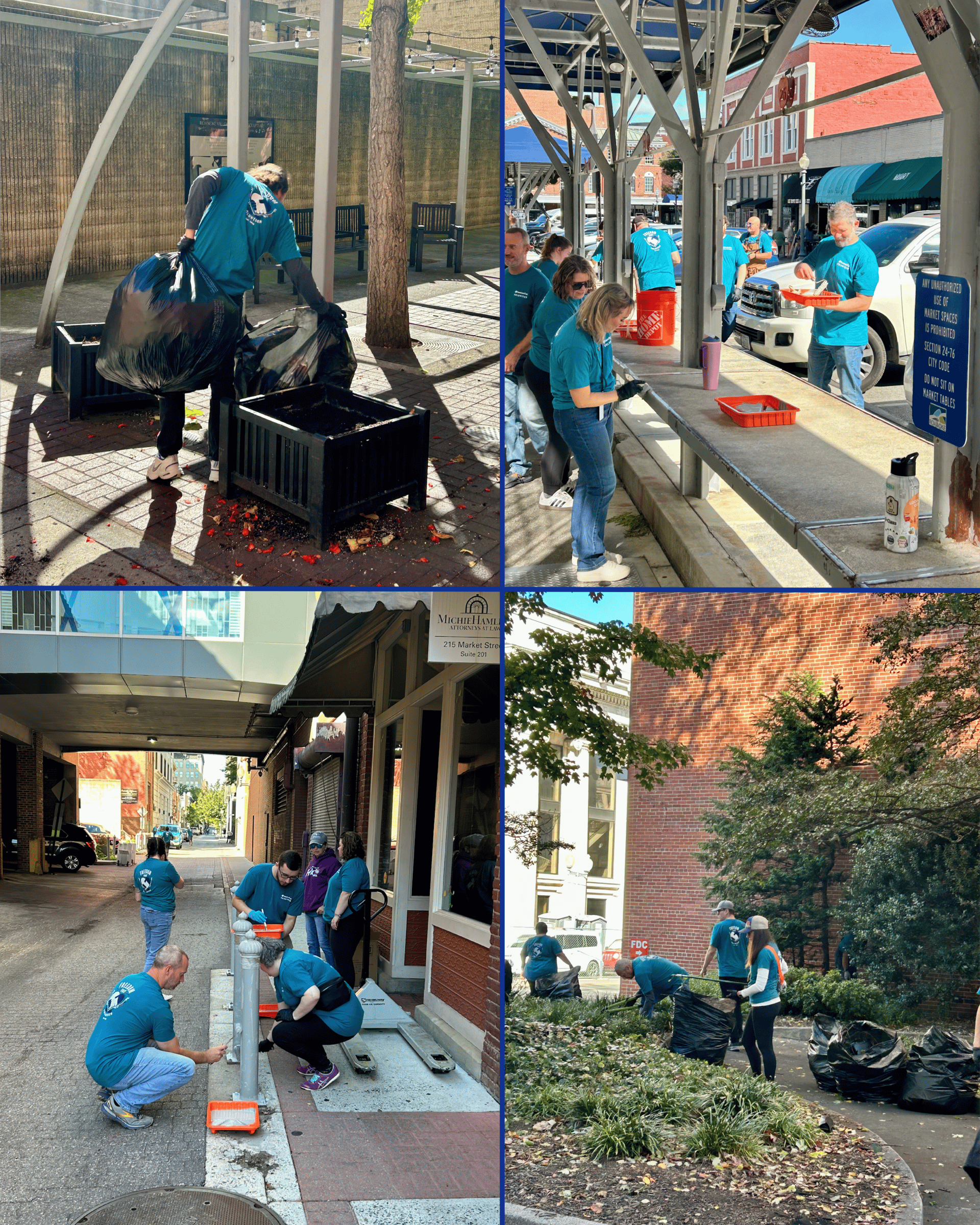 On Monday, 136 Freedom First Credit Union staff members volunteered with our Downtown Roanoke Ambassadors for a Community Day. 🗑🧹🧤During this event, they provided assistance in various ways, including: Picked up litter, cleared planters for winter, repainted the farmer's market structure, removed fallen leaves, mulched, removed weeds, wiped down surfaces, and swept curb lines.